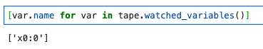 ๋ํ Tensorflow์ ํ ์ดํ์ ๊ธฐ๋ก๋๋ 'ํ์ต ๊ฐ๋ฅํ ๋ณ์'๋ GradientTape.watched_variables() ๋ฉ์๋๋ก ํ์ธ์ด ๊ฐ๋ฅํฉ๋๋ค.