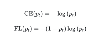 $$FL(p_t)=-\alpha_t(1-p_t)^\gamma\log(p_t)$$