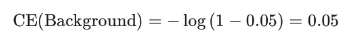 0.05์ ํ๋ฅ ๋ก Background ๊ฐ์ฒด๋ผ๊ณ ๋ถ๋ฅํ Background ์ผ์ด์ค์ weight 0.25๋ฅผ ์ฃผ๋ ๊ฒฝ์ฐ๋ฅผ ์ดํด๋ณด์.
