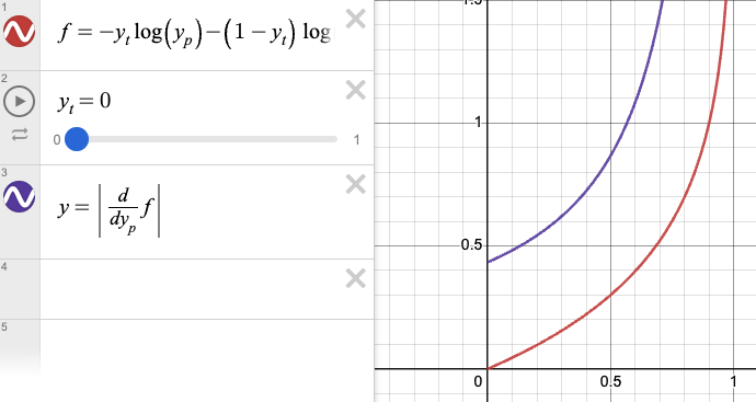 ๊ทธ๋ํ๋ก ์ดํด๋ด๋ ์๋ค์ํผ, ๊ฐ ํจ์๋ $y_p=0.5$๋ฅผ ๋์นญ์ถ์ผ๋ก ์ผ๊ณ ์๋ ๊ฒ๋ ์ ์ ์์ต๋๋ค.